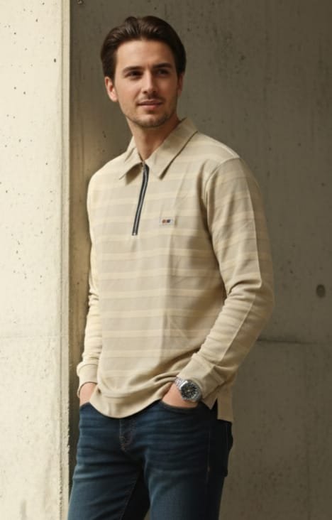 Men’s Striped Zip-Neck Full Sleeve T-Shirt