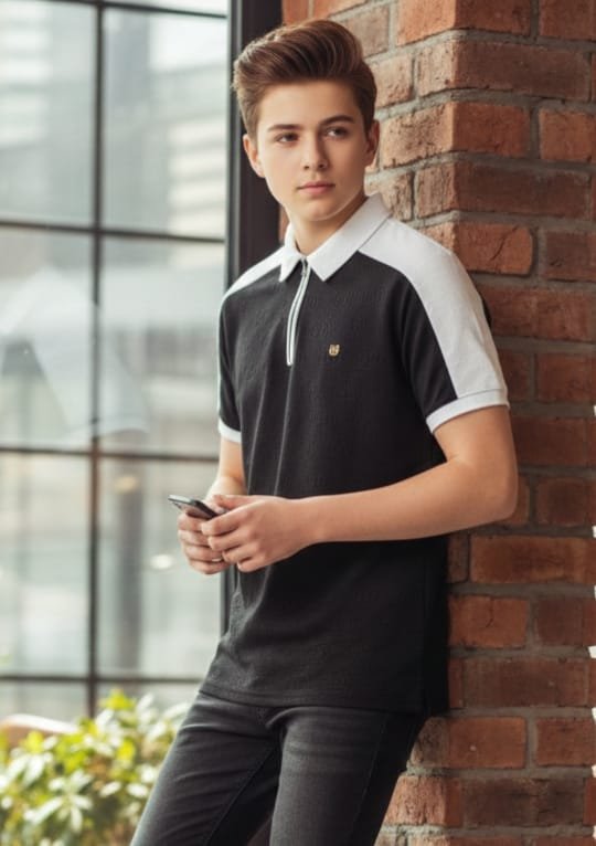 Men’s Premium Textured Half-Zip Polo T-Shirt